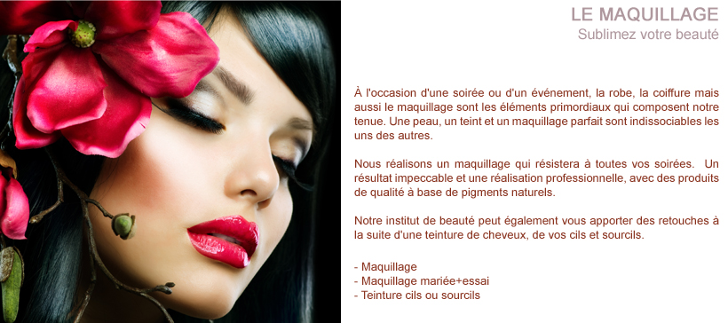 Votre institut de beauté est ouvert du lundi au vendredi de 9h00 à 19h00 et le samedi de 9h00 à 16h00. Uniquement sur rendez-vous.. Nous proposons de nombreux soins pour le bien être de votre corps et pour le rayonnement de votre visage. Nous vous invitons à découvrir sur ce site les nombreux services qui vous sont offerts pour assurer votre bien être.